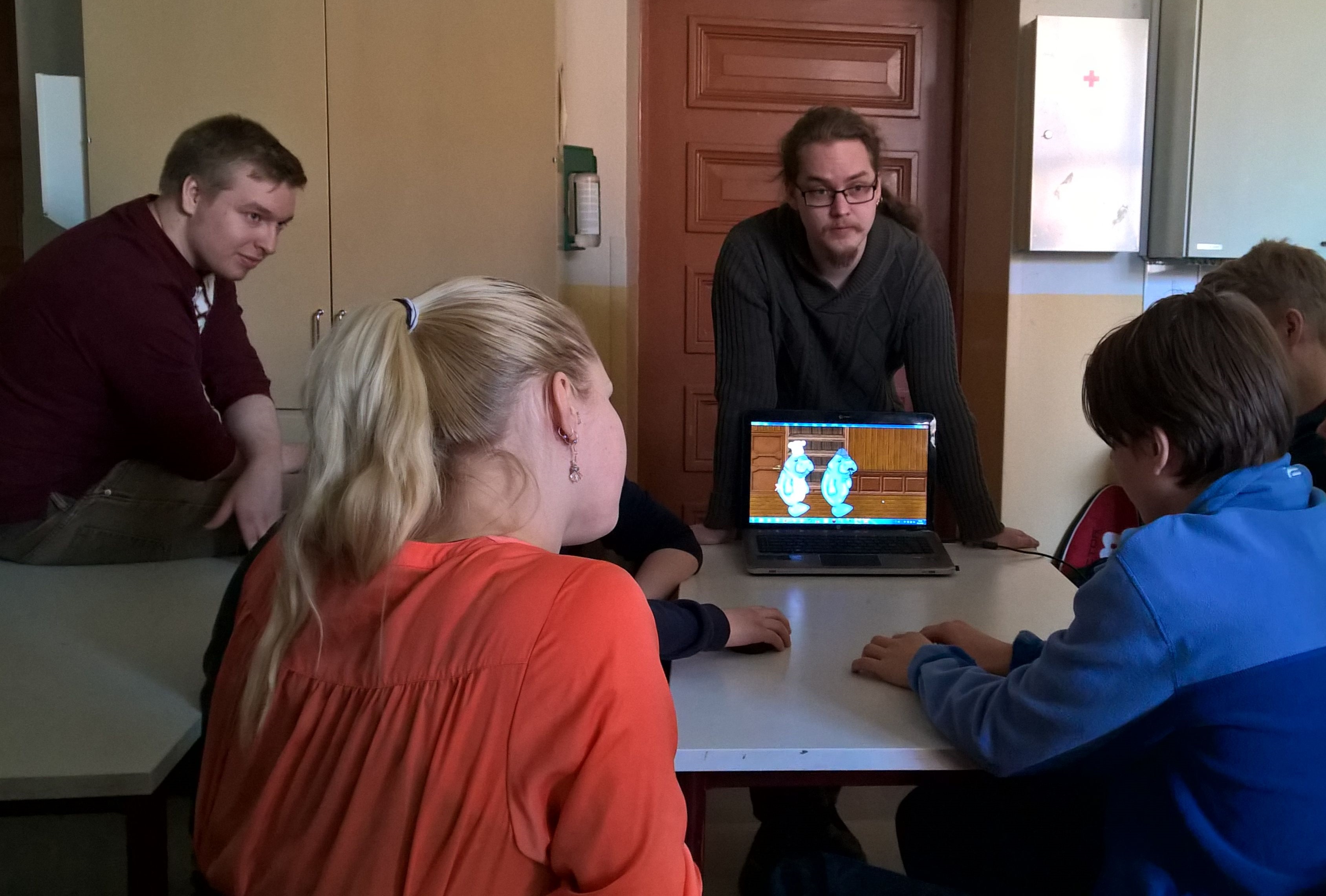 Alun perin torstaiaamuna ei tuntunut järkevältä jutella noin kymmenen vuotta nuorempien kanssa asioista, joita pitäisi implementoida peliimme. Toisen oppitunnin loputtua kuitenkin harmitti ettei meillä ollut enemmän aikaa. Saimme ainakin viisi ”must” korjaus/lisäysehdotusta ja lukuisia muita hyviä ideoita.