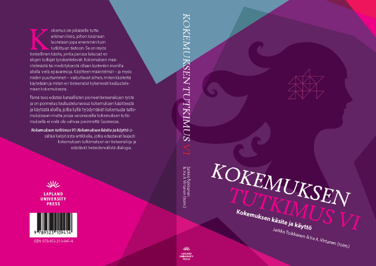 Lapland University Pressin julkaisema Kokemuksen tutkimus VI: kokemuksen käsite ja käyttö sisältää kaksitoista tieteellistä artikkelia, jotka sopivat laajan poikkitieteellisen yleisön luettaviksi. Mukana ovat Suomessa jo vakiintuneisiin kokemusta tutkiviin aloihin kuuluvat kehitys- ja kasvatuspsykologia, filosofia ja taiteellinen tutkimus.