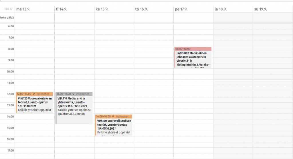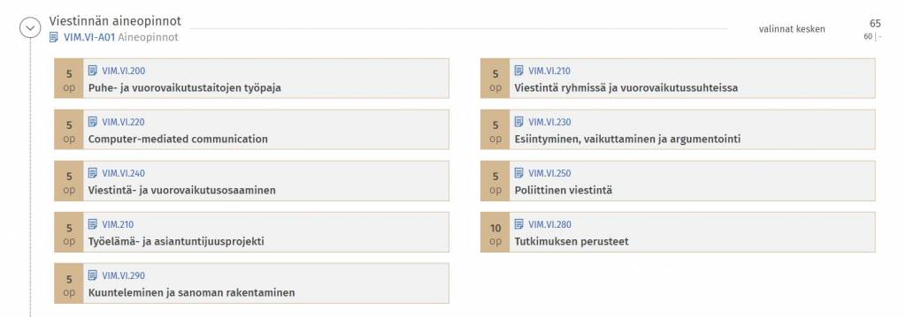 - Selaile itsenäisesti kurssi- ja kokonaisuustarjontaa, älä mene muiden perässä ellei sinua aidosti kiinnosta samat aiheet
